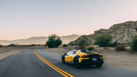 La Lamborghini Huracan Sterrato s'amuse en Californie La version tout-terrain de la Lamborghini Huracan s'est essayée à différents terrains en Californie. Par Vincent Lalanne-Sicaud Insolite - 25 Mai 2023