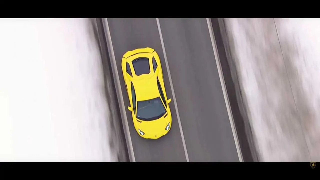 En face, le pilote de l'Extra 300, un avion préparé pour faire des acrobaties, s'offre quelques loopings. Le thème de cette vidéo est l'ego, selon Lamborghini, qui reprend ce terme pour l'un de ses modes de conduites qui rend l'Aventador S encore plus… bestiale !
