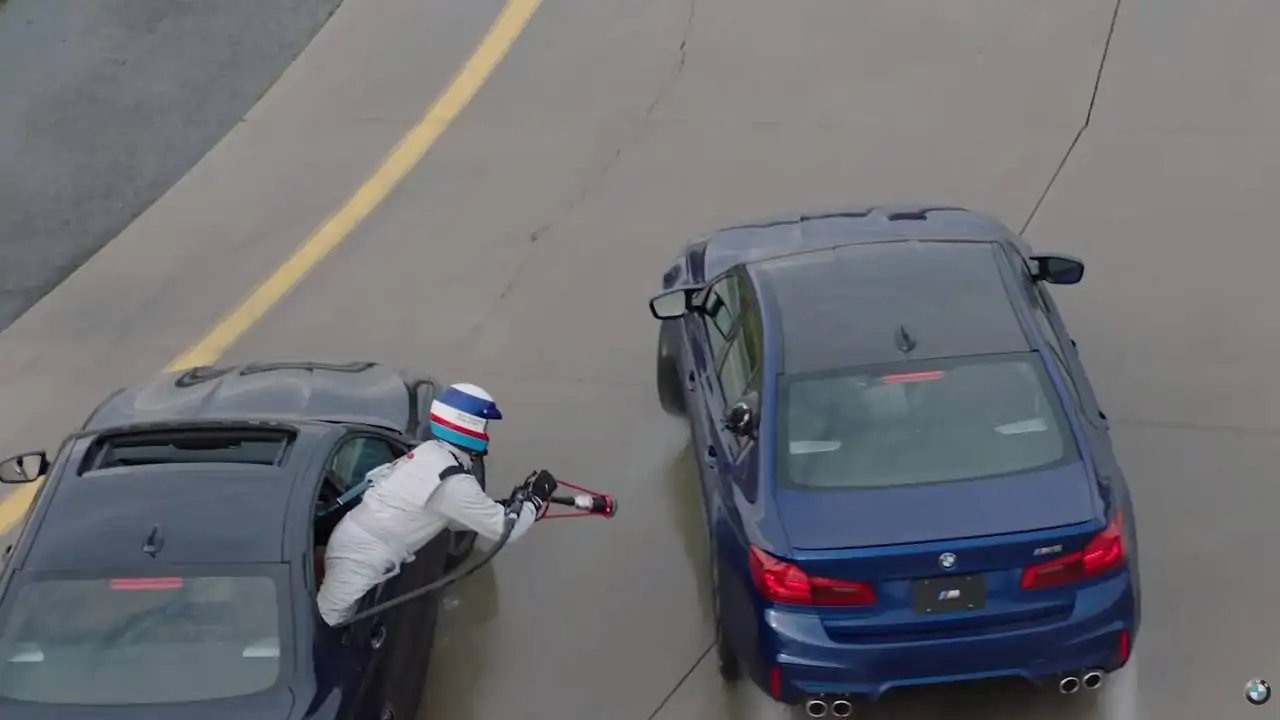 Toujours aussi fous, les ingénieurs de BMW Motorsport ont procédé différemment afin de réaliser ce record mondial. Ils ont transformé la précédente BMW M5 afin qu’elle puisse accueillir un grand réservoir au niveau du coffre et de la banquette arrière. Ainsi, pendant que la nouvelle BMW M5 F90 poursuit son drift, la précédente M5 se place à quelques centimètres de sa descendante afin d'injecter plus de 50 litres d'essence en seulement 50 secondes !
