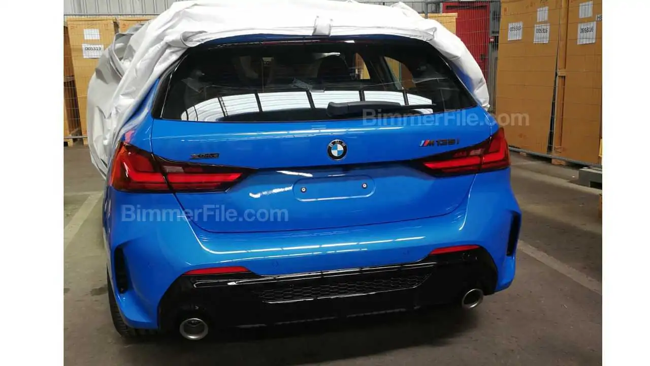 Au premier coup d’œil, nous avions l'impression de voir une Audi A1, à cause de la forme des feux arrière. Mais à y regarder de plus près, c'est bien une BMW et cet arrière nous plaît finalement assez bien. La BMW M135i est ici peinte en bleu, et elle dispose de sorties d'air qui lui donnent plus de prestance, ainsi qu'un extracteur d'air noir laqué sublimé par deux canules d'échappement rondes. La sportive est assez belle, et visiblement, elle est bien sculptée pour combattre les Audi S3, Mercedes-AMG A 35 et Volkswagen Golf R.