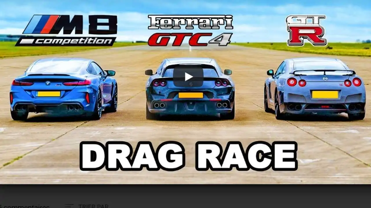 C'est ainsi que la BMW M8 Competition affronte la Ferrari GTC4Lusso ainsi que la Nissan GT-R. La première a un V8, tandis que la deuxième et la troisième ont respectivement un V12 atmosphérique et un V6. La BMW développe 625 ch dans cette version Competition. La Ferrari est plus puissante, elle délivre 690 ch. Enfin, la Nissan GT-R est la plus "vieille", elle date de 2009 et ne développe "que" 485 ch. Toutefois, son moteur a été boosté. Elle développe désormais 630 ch.