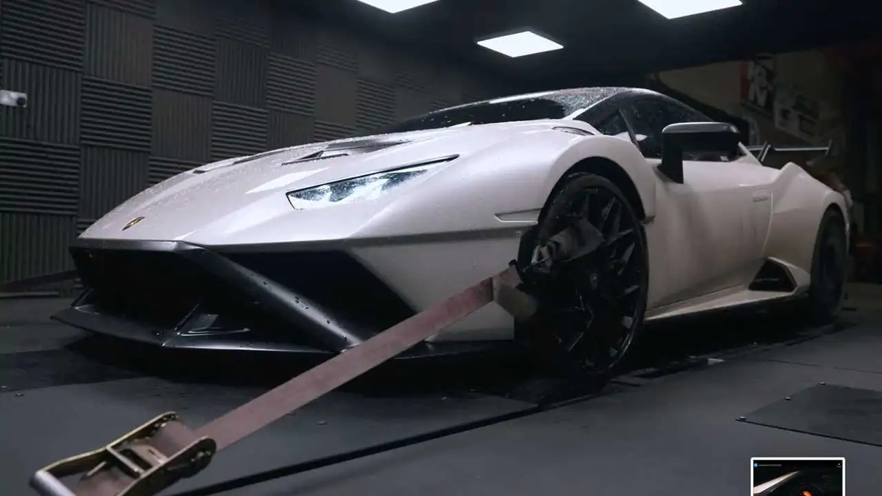 La Huracan STO a été la première à passer sur le banc, avec une puissance de 550 chevaux aux roues. En recalculant les pertes de la chaîne cinématique, ce chiffre est remonté à 636 chevaux, soit un peu moins que la puissance annoncée. Une rapide vérification du poids a permis de déterminer que la STO pesait 1 547 kg, soit 411 ch/tonne.