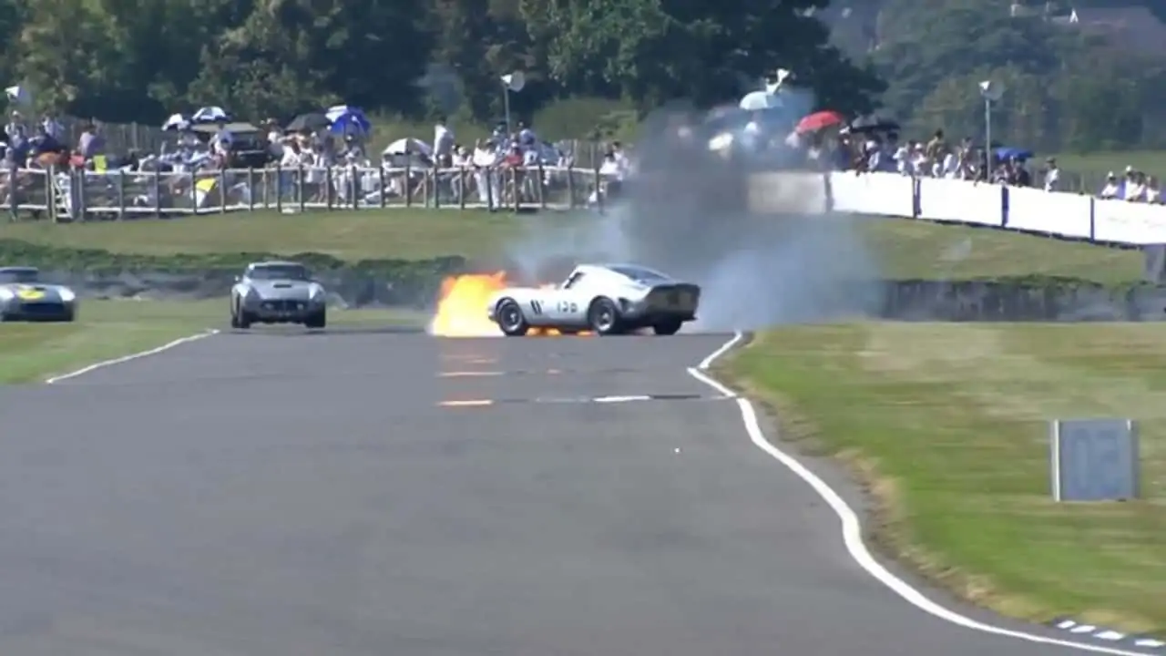Une Ferrari 250 GTO prend soudainement feu lors du Goodwood Revival