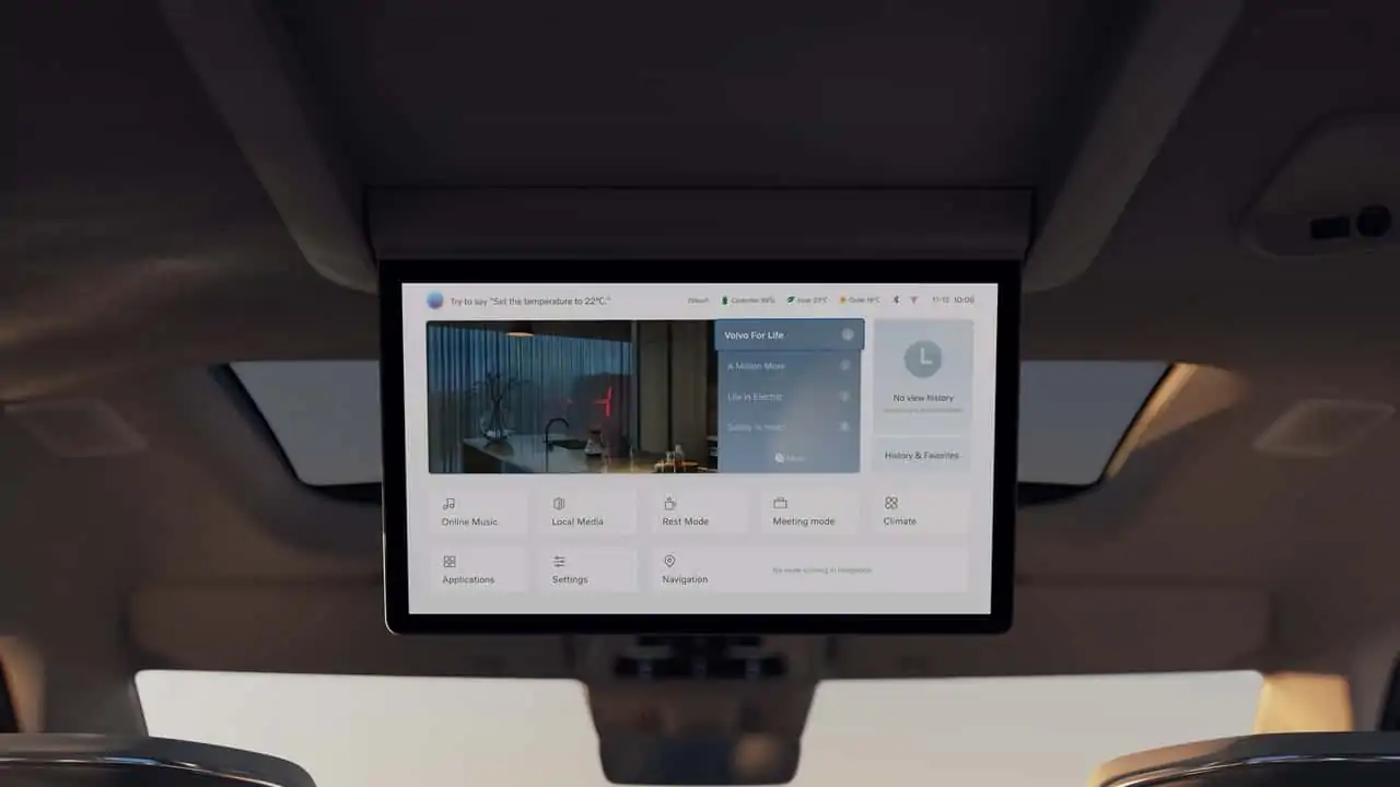 Le monospace Volvo EM90 très polyvalant, est équipé d'un écran qui se replie