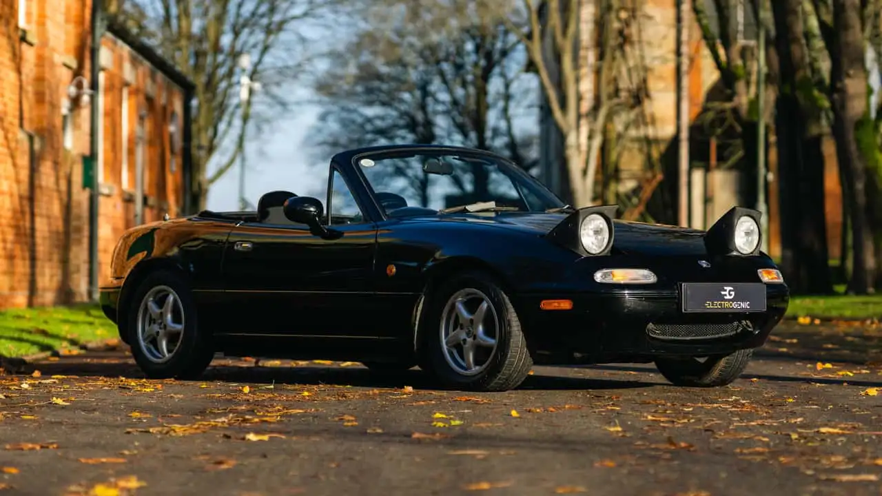 La société britannique Electrogenic propose des conversions électriques pour différents types de voitures. Nous parlons ici de la Porsche 911, du Land Rover Defender, de la Jaguar E-Type ou de la DeLorean DMC-12, et maintenant aussi de la première génération de Mazda Miata (NA).