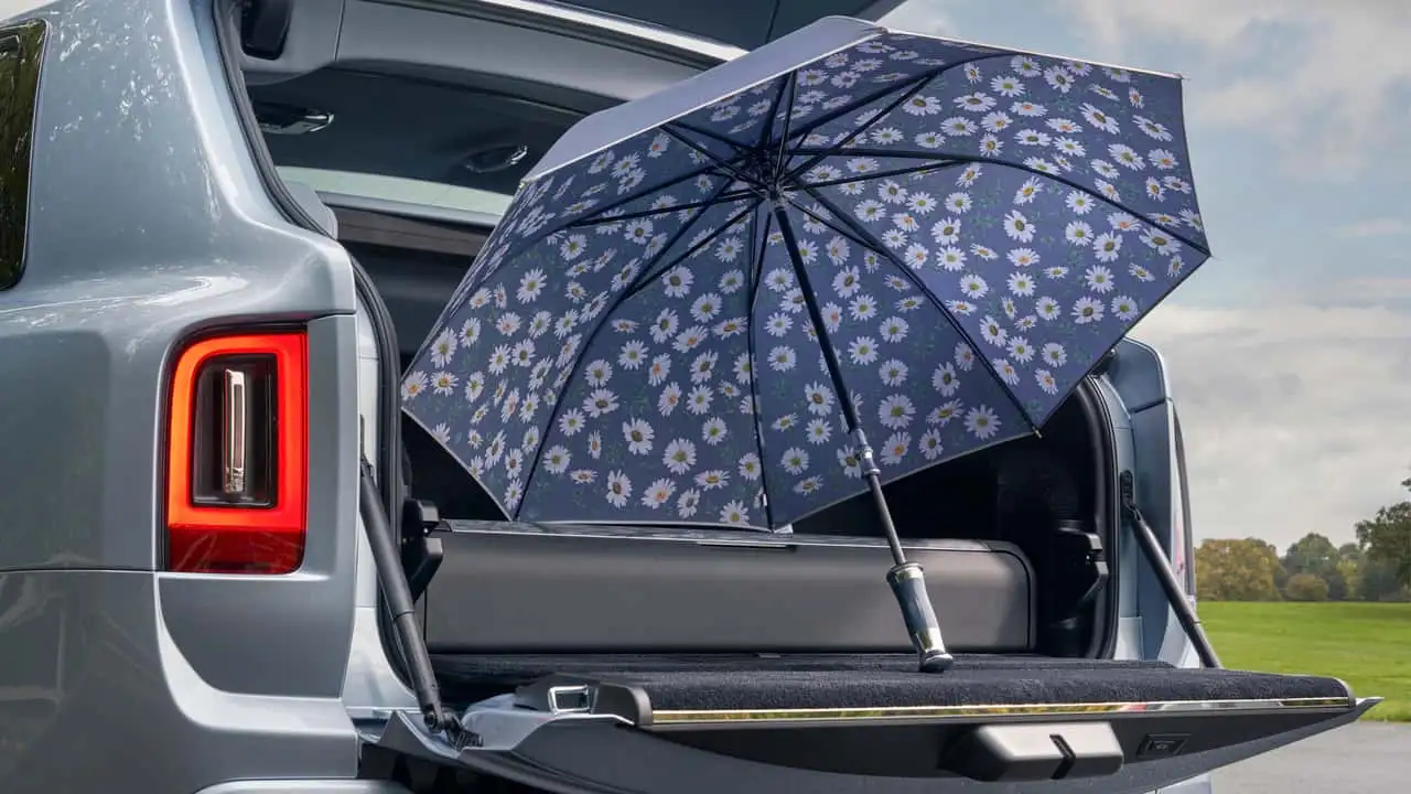 Quel est le rapport entre un parapluie et Rolls-Royce ? La réponse est toute trouvée. En effet, l'un des éléments les plus distinctifs des voitures de la firme britannique a toujours été le fameux parapluie placé à l'intérieur des portes : une véritable signature.