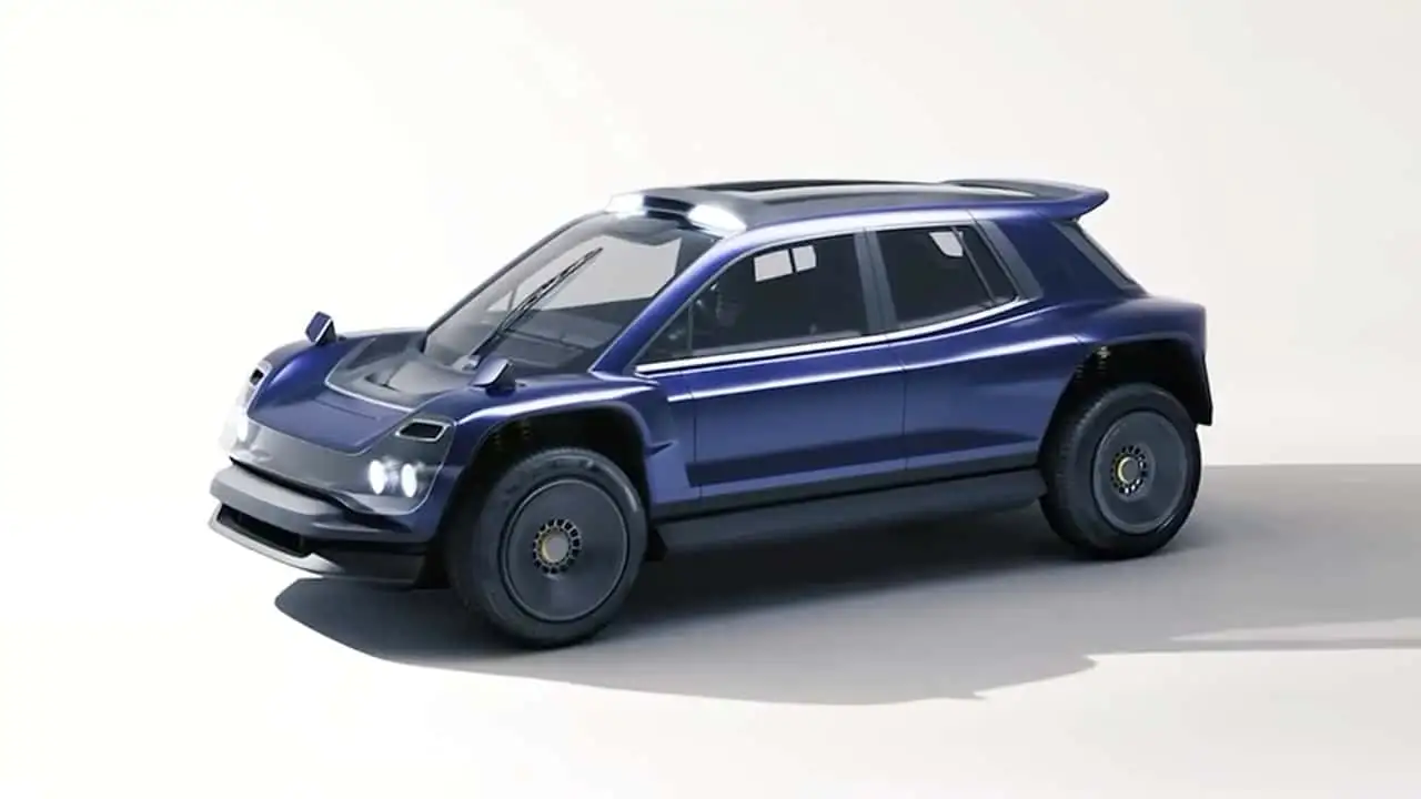 En effet, en extrayant des images des photogrammes de la vidéo de l’Amos Tuono, on découvre – pour la première fois – le style et les proportions de la Tuono : une quatre portes surélevée façon SUV/crossover, avec une garde au sol importante, quatre projecteurs avant carénés, un grand aileron arrière et des feux additionnels sur le toit.