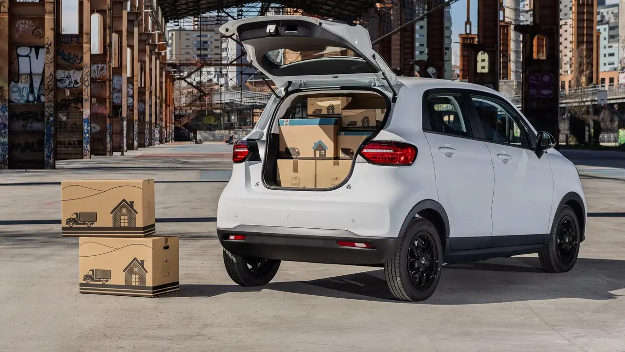 La transformation de la Leapmotor T03 en véhicule utilitaire passe principalement par la suppression de la banquette arrière, remplacée par un volume de chargement d’une capacité jusqu’à 657 litres. Une configuration qui permet d’exploiter au mieux l’espace intérieur tout en conservant des dimensions extérieures réduites (3,62 m de long), idéales pour circuler et se garer en ville.